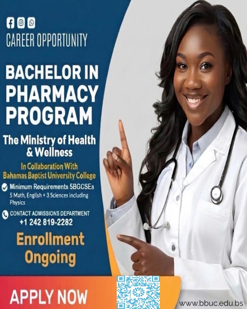 The Bachelor of Pharmacy (BPharm) program at Bahamas Baptist University College (BBUC) is an intensive five-year program structured as a 2+3 track, blending foundational sciences with advanced pharmaceutical education and clinical training. The first two years focus on core subjects such as biology, chemistry, anatomy, and introductory pharmacy principles, preparing students for the professional phase. The subsequent three years delve into pharmacology, clinical therapeutics, pharmaceutical technology, and patient care, with extensive hands-on training through internships and clinical rotations. This program equips graduates with the skills to excel in various pharmacy settings, including community pharmacies, hospitals, and pharmaceutical research. Graduates are also prepared to meet the licensing requirements for practice as professional pharmacists, contributing to the advancement of healthcare in the Bahamas and beyond.