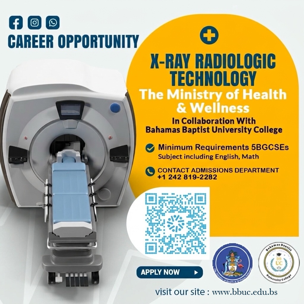 The Associate Degree in Radiologic Technology at Bahamas Baptist University College (BBUC) is a comprehensive two-year program designed to prepare students for entry-level positions in medical imaging. This program combines rigorous theoretical coursework with hands-on clinical training, equipping students with the skills to operate advanced imaging equipment, perform diagnostic radiographic procedures, and prioritize patient safety. Students will learn anatomy, physiology, radiologic physics, and imaging techniques while gaining practical experience in clinical settings under the supervision of certified professionals. Graduates will be eligible to sit for regional or international certification exams, opening opportunities for careers in hospitals, clinics, and diagnostic centers, as well as further specialization in advanced imaging modalities.